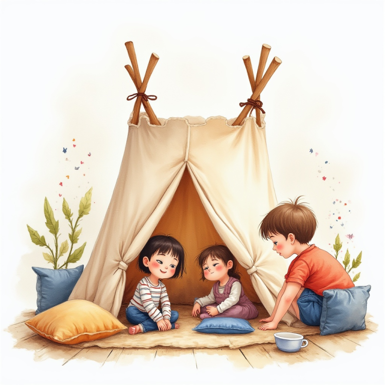 Mit Kissen, Decken und Stühlen entsteht eine eigene Abenteuer-Burg – gemütlich und voller Fantasie.