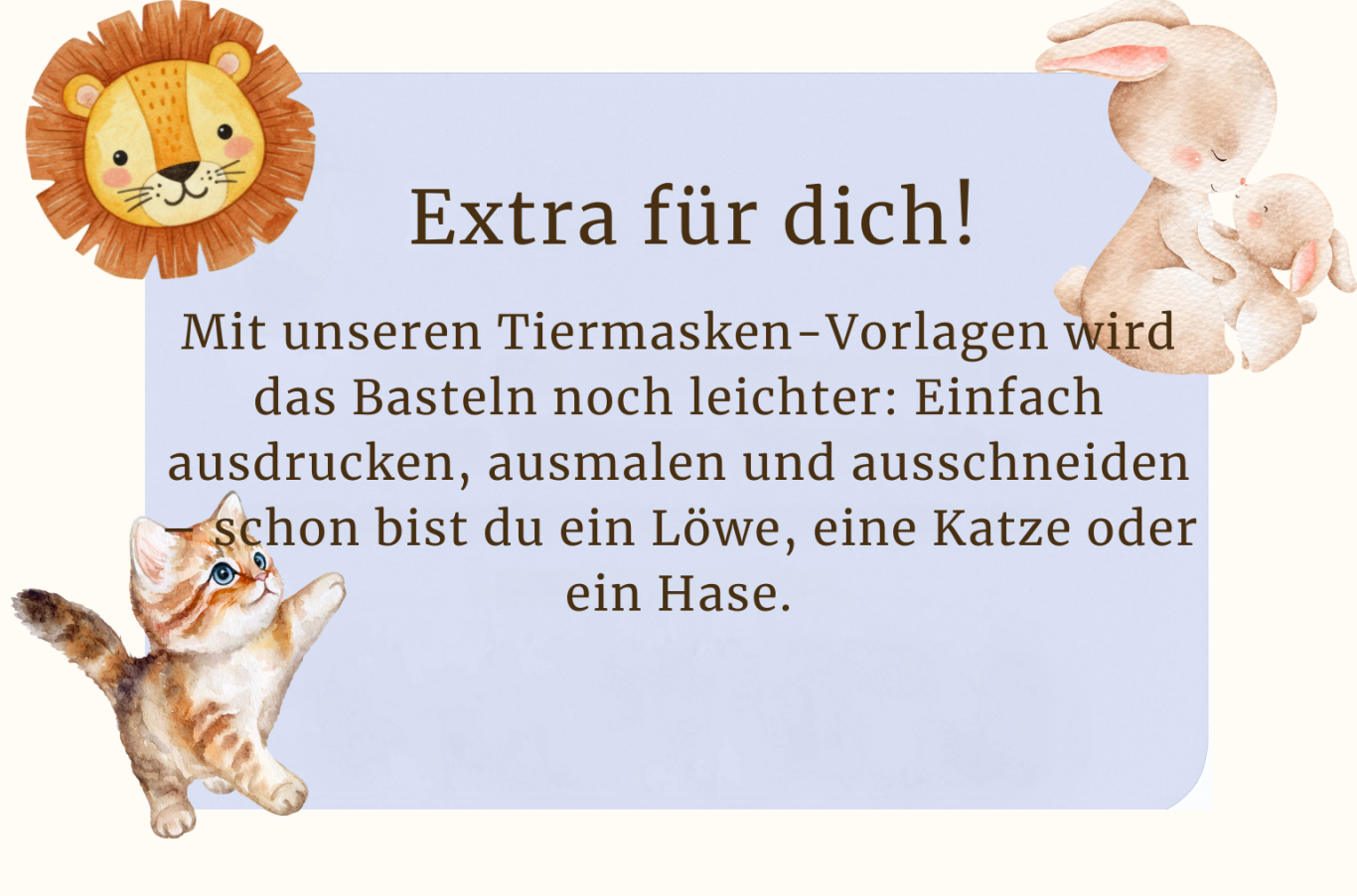 - Macht eine Tiermasken-Show: Jedes Kind stellt sein Tier vor.